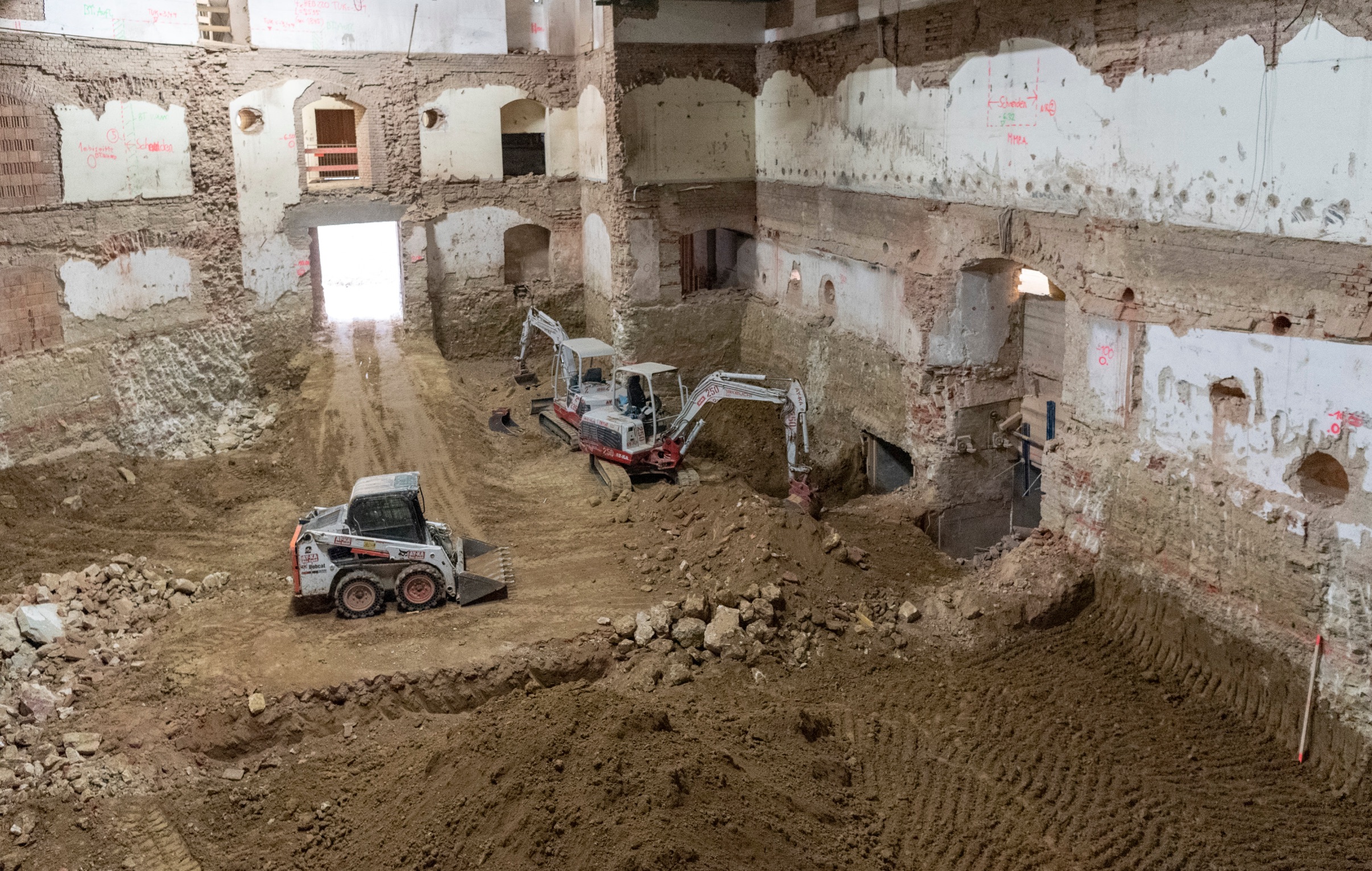 Hier der "alte" Eingangsbereich mit Sicht auf Abschnitte des verputzten Ziegelgewölbes.