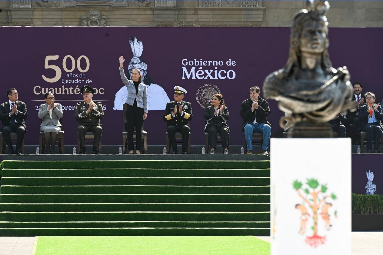 "Cuauhtémoc und das Azteken-Volk verteidigten ihre große Nation mit Ehre und Kraft", sagte die linksgerichtete Präsidentin auf der Trauerfeier. Soldaten feuerten Ehrensalven ab und die Nationalfahne wehte auf halbmast. Als Azteken verkleidete Menschen bliesen in Muschelschalen.