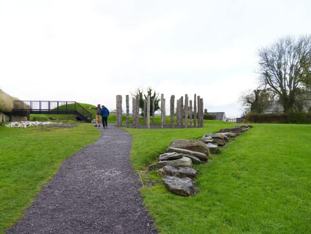Hier die Pfosten, die laut der Dame, die die Führung durchführte, das Innere des Hügels widerspiegeln, allerdings nicht durch Holzpfosten, sondern durch riesige Steine.
