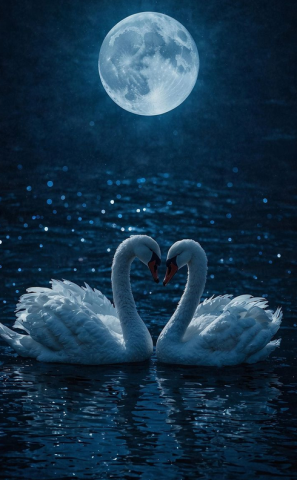 Da kam sie zu ihm. Er nahm sie in die Arme. Sie vereinigten sich in Gestalt zweier Schwäne und umkreisten den See dreimal. Auf diese Weise wurde sein Versprechen nicht gebrochen. In der Gestalt weißer Vögel brachen sie auf und kamen nach Bruig ind Maicc Óic. Gemeinsam sangen sie, so daß die Menschen dort für drei Tage und drei Nächte in Schlaf fielen. Danach blieb das Mädchen bei Óengus.