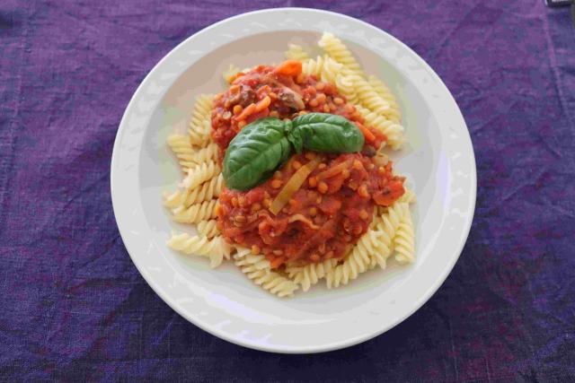 Die Pilze, Möhren und der Lauch müssen nicht hinzugegeben werden, aber sie fügen der Bolognese noch ein paar Vitamine dazu, und der Geschmack wird viefältiger. Gerne kann das Gemüse nach eigenem Geschmack variiert werden. Wer möchte kann z. B. auch noch mit etwas Hafersahne verfeinern (hier nur auf dem Foto mit drauf). Zur Bolognese kann man glutenfreie Nudeln nach eigener Wahl essen. Nach Belieben kann man noch Parmesan darüber streuen.